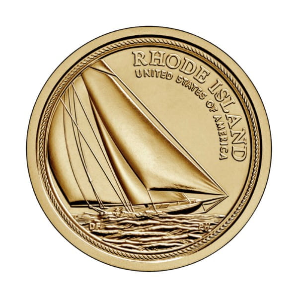 Rewers monety przedstawia słynny jacht „Reliance” Nathanaela Herreshoffa poruszający się po wodach otaczających Rhode Island. Dodatkowo rewers zawiera nazwę stanu Rhode Island oraz napis „United States of America”.