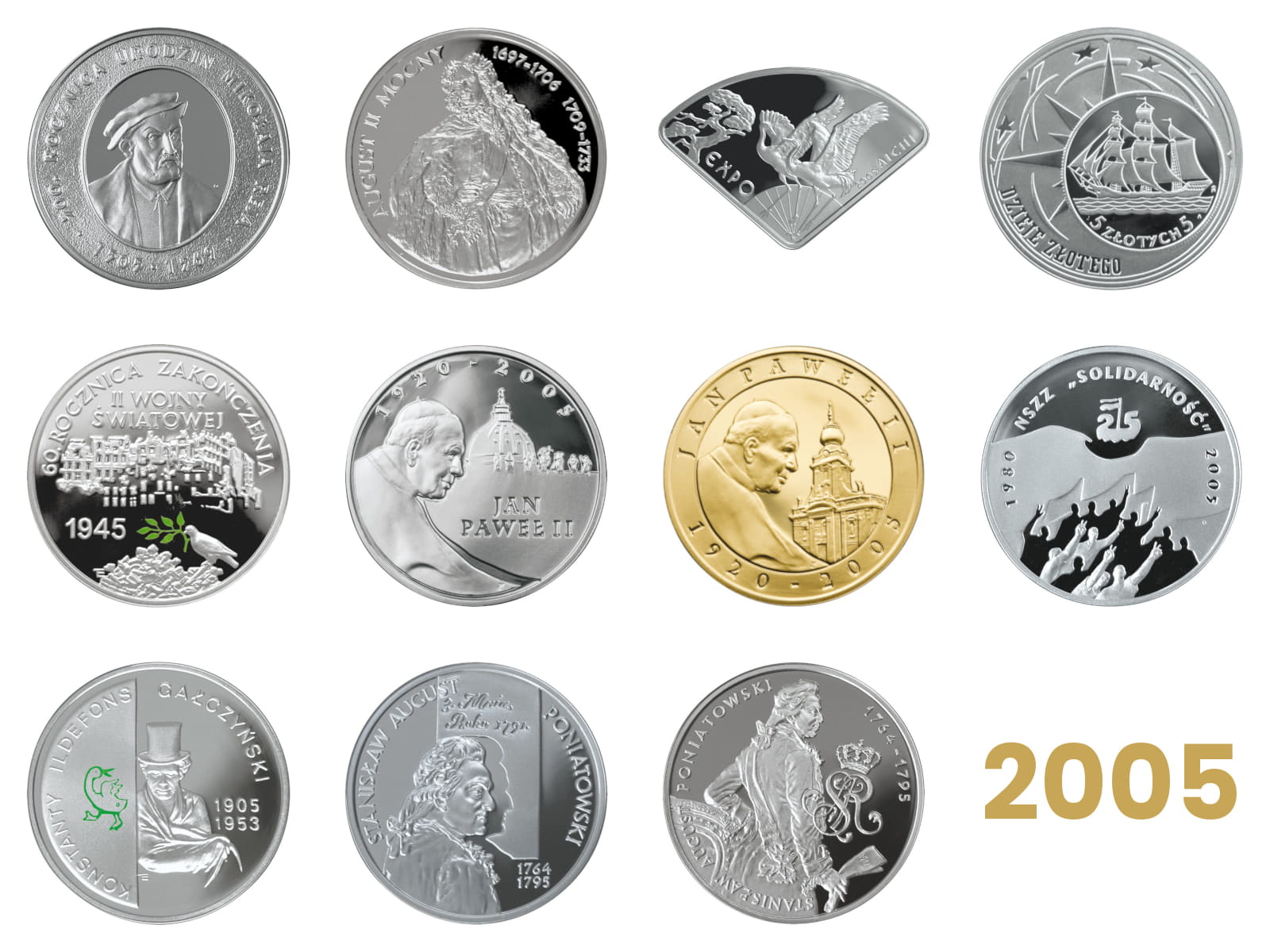 Komplet monet kolekcjonerskich 10 zł - 2005 rok