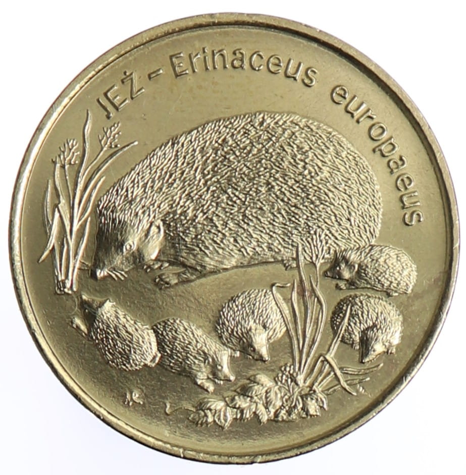 Moneta okolicznościowa 2 złote Zwierzęta świata: Jeż (łac. Erinaceus europaeus)