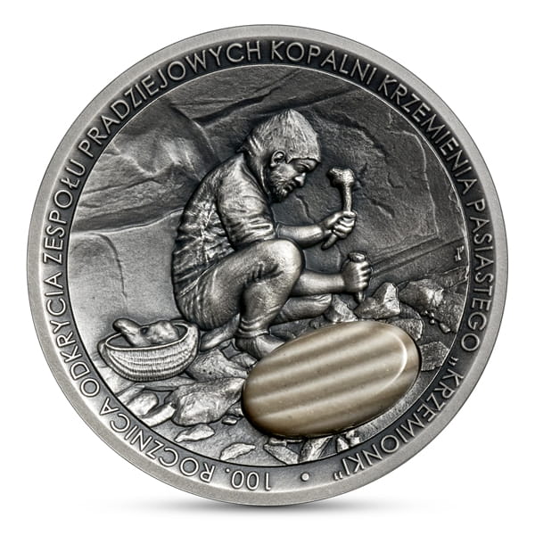 Moneta kolekcjonerska 50 złotych 100. rocznica odkrycia zespołu pradziejowych kopalni krzemienia pasiastego „Krzemionki”